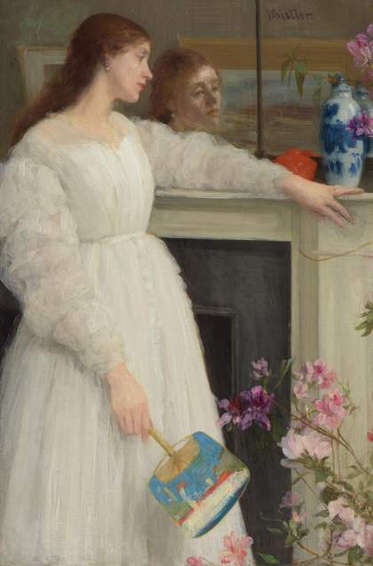 Whistler influenced the style of John Lavery in the 1890s and the early work of Kelly, McEvoy (whose father was a friend of the American painter), Furse and the Scot Robert Brough. Even though the latter two were to become Sargent’s protégés, as evidenced by their handling of paint, Brough’s Fantaisie en Folie (fig.4) is clearly influenced by Whistler’s misty brushwork and low-keyed palette. A woman with a haughty poise and striking profile looks down on a laughing Buddha, touching the statuette with her pendant. The painting’s title has led to many speculative translations suggesting madness but a closer equivalent is ‘Unbridled Fantasy’. The misplaced focus on insanity has been a distraction from the musical meaning of ‘fantasy’ and the possible connection to Whistler’s ‘Symphonies’ and ‘Nocturnes’ and to aestheticism. This would account for the enigmatic quality and subject of the painting, probably intended to be read as mood and feeling. Fantaisie en Folie blurs the boundaries between portraiture and figure painting, and belongs to a ‘genre … representing the aesthetic moment… which showed familiar people having superior thoughts, in pictures which portrayed the beauty of contemplation’ which can be traced back to Whistler’s Symphony in White, no. 2, The Little White Girl (fig.5).4 As McConkey points out, ‘hers is the first of many languid arms which reach out for the aesthetic object’,5 a blue china pot in this instance, or the Chinese statuette in Brough’s painting. Fantaisie en Folie was exhibited in Paris, Glasgow, Vienna, Munich and St Louis, Missouri. Like Furse, who died of consumption in 1904 at the age of 36, Brough’s promise was unfulfilled. He died at 34 following a train crash in Sheffield. Their early deaths may explain why both are neglected figures in British art. In accordance with Brough’s will, Fantaisie en Folie, which he regarded as his masterpiece, entered the Tate collection in 1905, the year he died.