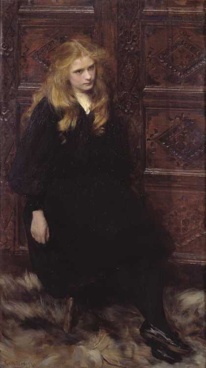 Ralph Peacock never achieved fame like de László’s; his inspiration seems to have dried up, and appreciation of his work declined. The darling of art critics at the onset of his career, he had early success: a gold medal at the RA Schools, the Creswick Prize in 1887, a gold medal in Vienna in 1898 and bronze at the Paris Universal Exhibition in 1900. Yet despite his technical abilities, he was never made an ARA and was chiefly known in his lifetime for Ethel 1897 and The Sisters 1900. Ethel Brignall, Peacock’s future sister-in-law, features in both portraits and, with his future wife Edith, in The Sisters. Peacock became a successful portrait painter, especially of children, but the wood panelling in the background of the Tate’s two portraits appears as the backdrop in too many of his works.