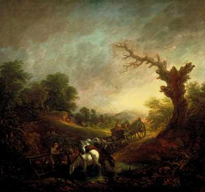 - Thomas Gainsborough Sunset: Carthorses Drinking at a Stream c.1760