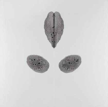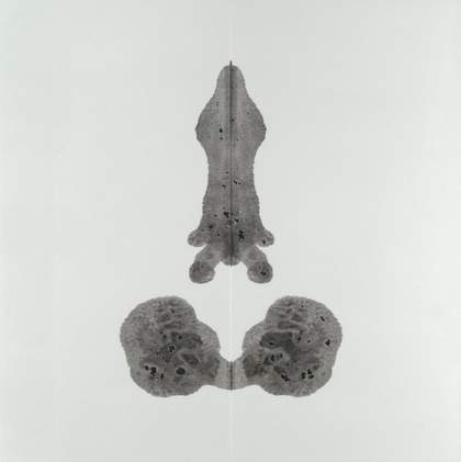 George Grosz, the German painter associated with Berlin Dada, nicknamed Pollock a ‘Rorschach-Test-Rembrandt’. In the enthusiastic critical response to Pollock’s machismo gestures, and in the ‘stain paintings’ of his fellow Abstract Expressionists such as Helen Frankenthaler and Kenneth Noland, the smudge became an index of personality, a cardiogram of the unconscious. Grosz implied that the Abstract Expressionist’s use of blotting was, in reality, merely decorative, like lace. In 1984 Andy Warhol created his enormous, 13½ ft high, gold and multicoloured Rorschach Paintings. If his oxidisation series of the late 1970s, in which Warhol urinated on canvases covered with metallic paint, had mocked Pollock’s drip painting, the Rorschach series might also be interpreted to ridicule any pretension to be able to read anything about the artist’s intention below the surface. Blown up to menacing proportions, his ink blots remain obstinately meaningless.