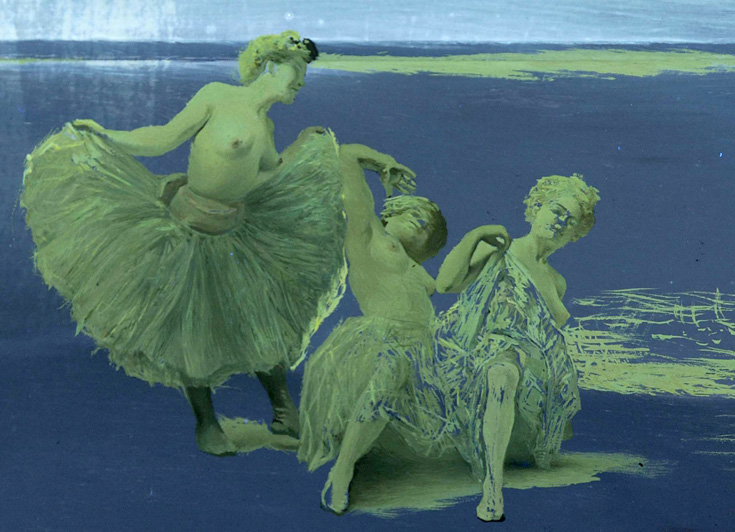 Detail showing the infrared mosaic image of the group of three dancers