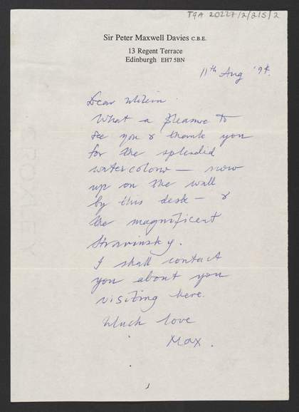 - Milein Cosman and Hans Keller were friends with Davies. Davies signs his correspondence 'Max'.