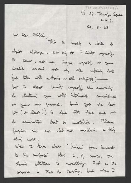 - Correspondence from the artist Ben Nicholson about advice and criticism Nicholson gave Cosman and a drawing which Cosman sent Nicholson for his birthday.