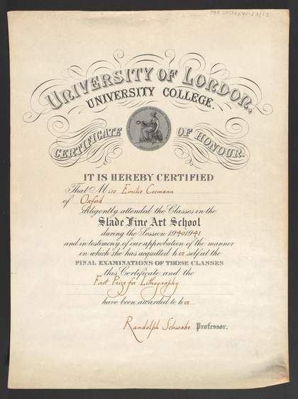 The collection includes excellent examples of Cosman's artwork, Cosman's prose, lecture notes from her schooling in Switzerland and her days at the Slade School of Fine Art, classes she attened at Oxford Polytechnic and her recollections of life before, during and after the Second World War, arrangements for and producing exhibitions including her own, drafts of articles by Cosman and Keller for publications and draft,rehearsal and final scripts for Black and White, a 1958 Associated-Rediffusion television programme for schools about art broadcast by ITV, which Milein Cosman presented and helped write.