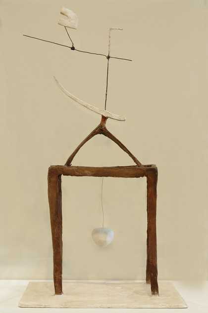 It is always smaller and more fragile than I remember. Its title is redolent of deep night, stained sheets and dragged bodies, while the cage-like structure is reminiscent of the scaffold and the guillotine, or a charred building. Above, attached by twisted bent wire to the roof beams like an early television aerial, are three white shapes: an upside down “L” or blind man’s cane, a crescent or shooting comet and a broken moon. These shapes could just as well be impaled body parts: a gaping head and a long skinny penis or tongue. This is a place of medieval torture or an ancient object from an Egyptian tomb. It is a grisly, cruel scene – none of the gaiety, humour and bird-like sounds that emanate from a Klee or Miró. 'I work to please the dead' Giacometti said.