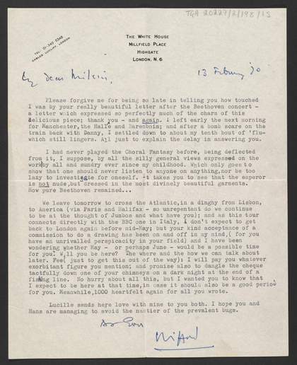 Clifford Curzon Letter from Clifford Curzon to Milein Cosman 17 December 1959 © reserved License this image Sketches, letters, etc. Letter from Clifford Curzon to Milein Cosman Clifford Curzon, recipient: Milein Cosman 17 December 1959 Letter from Clifford Curzon to Milein Cosman Clifford Curzon, recipient: Milein Cosman 13 February 1970