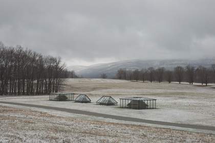 Sarcophagi in Glass Houses, made from wood, glass, and iron. Collection Storm King Art Center, Mountainville, New York. Abakanowicz Arts and Culture Charitable Foundation. Photo courtesy of Storm King Art Center, Mountainville, New York. (1989)