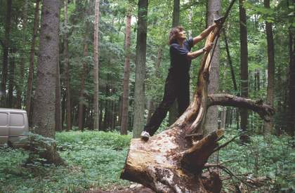 The artist working on War Games 1987–95 in the Masurian Lake district, Poland. Photo © Artur Starewicz/East News. (1987)