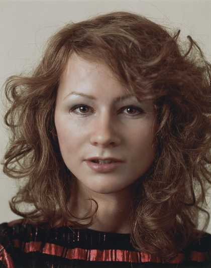 Wearing’s photographs explore how the public and private identities of ordinary people are self-made and documented. For her series Album 2003, Wearing reconstructed old family snapshots. In this photograph she wears a dress and hairstyle her sister wore in the 1980s. With the help of experts at Madame Tussauds she also fabricated a silicone masks of her sister’s face. By putting a version of someone else’s face on hers she is metaphorically ‘seizing’ their identity. The only bits of Wearing that can be seen are her eyes and teeth.