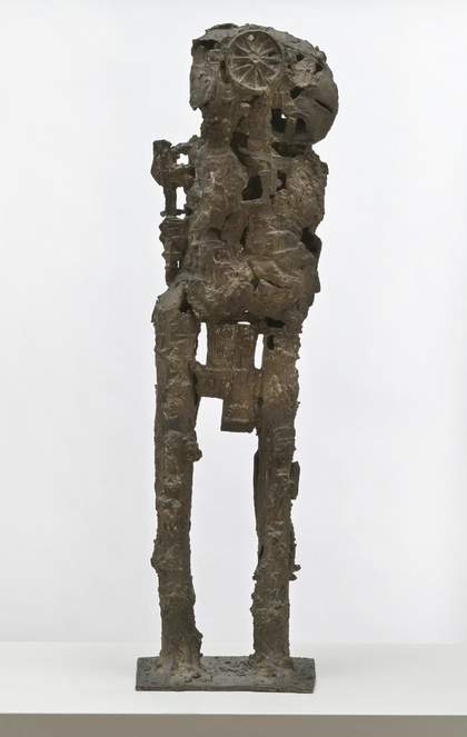 Often artists abstract the human figure by breaking it down into separate body bits or by adding other non-human elements. Eduardo Paolozzi adds machine parts to his figures, while Parviz Tanavoli adds architectural features. They create abstracted robot-like figures that perhaps comment on our lives and how we live them. In drawings such as Tree with Shoes 1998, artist Louise Bourgeois also mixes unlikely elements – such as tree branches – with the human figure. Her sculptures often include isolated body bits. She uses aspects of the human to explore of a range of themes including childhood memories, sexuality and mortality.
