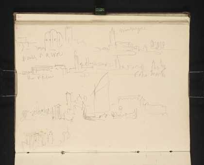 Studies of Waterfront Churches at the Western End of Venice, Including Sant’Andrea, Santa Maria Maggiore and Santa Marta, with a Sailing Boat