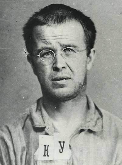 NKVD arrest photograph of Yevgeny Polyakov, born 1910, translator. Arrested on 22 August 1932 on a charge of being a member of a white guard terrorist organisation, shot 20 March 1933.