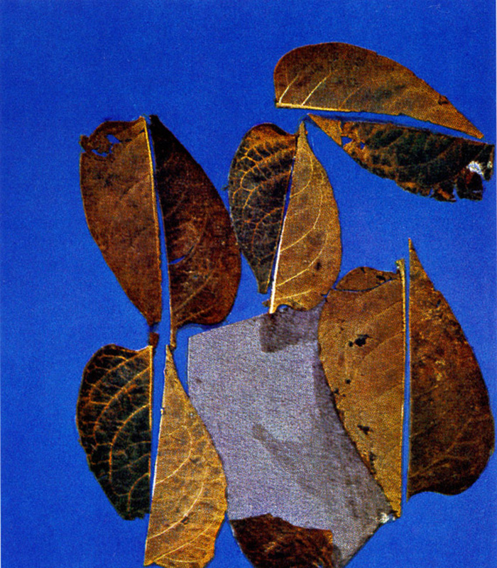 Although Albers developed his colour course subsequent to his emigration to the United States, it reflected a Bauhaus-indebted approach to material instruction nevertheless, as did his instruction generally.15 Students used foliage (fig.6) and Color-aid paper in their studies, employing materials available to them to study the material of colour itself; they did not mix pigments to create a new, composite colour. In his colour course the former Bauhaus master created a structured environment in which he encouraged students to experiment with colour by assigning exercises (problems to be solved) meant to attune students to perceptual phenomena and by extension, the interaction of colour. One came to appreciate the relativity of colour upon completing Albers’s course; but more, the means to the end were in themselves significant. Students met Albers’s charge to use colour relationships to create the illusion of volume, numerous surface effects, or the appearance of transparency (fig.7) through a process of trial and error, often by placing countless pieces of paper in juxtaposition with one another until arriving at the desired effect. Above all else, his colour instruction was meant to challenge students to discover the potential (and limitations) of colour-as-material and its use in the design. And like all his instruction it was not geared toward a prescribed end; students ultimately were to make use of his methods on their own terms.