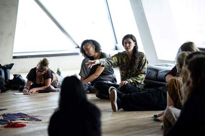 This remained implicit as we continued into the ‘Dreaming Session’, introduced by Marleen Boschen (Adjunct Curator, Art and Ecology) as ‘a way to connect to ancestors to learn about resistance and wayfinding’ beyond the sleeping state. Here, the stakes of ancestral connection were invoked in a range of technologies for cultural survival and, notably, resistance to establishing paradigms of artificial intelligence. The session featured four performances framed as ‘offerings’: experiments in receptive engagement that challenged typical dynamics between the audience and performer. The term ‘offering’ felt indicative of a deliberate code-switching within the museum’s mode of address, denoting an attempt to adopt the sentiment and lexicon of ancestral reciprocity.