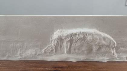 Working with the architectural artist Tim Ingleby, Lines of Fragility 2024 was translated into a digital surface relief model. A physical bas-relief was then fabricated from these digital files, transforming the flat image of the dwelling into tangible, spatial presence (figs.19 and 20).