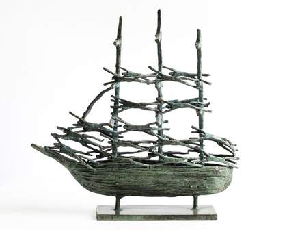 Notable artworks of Famine commemoration inform the context for this inquiry. John Behan’s Famine Mother and Children 2000 (fig.8) translates the illustration of O’Donnell into bronze, lending permanence to her testimony, while the artist’s Famine Ship 2000 (fig.9) fuses skeletal bodies into the vessel’s rigging, collapsing the distinction between emigrant and coffin ship into a single form.33
