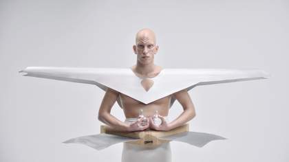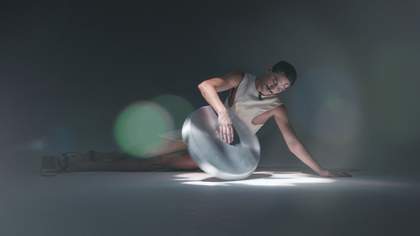 For their film Flutura (Butterfly) 2025, the Kosovar performance artist Astrit Ismaili drew on elements of tepsijanje. Commissioned for the Biennial, the work includes scenes of the artist spinning a pan and singing, ‘I shine in the dark. I am what I am, and what I am, is what I want to become’. In Flutura, Ismaili reclaims Balkan oral histories and traditions as sites of imagination, challenging the presumed divide between ancestral knowledge systems and futurity. Traditional motifs such as the pan and expansive hip and arm extensions (figs.11–13) are activated within a queer performative framework as tools for liberated self-expression.