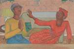 The figure on the right wears a head-wrap, reflecting a growing sense of cultural freedom and connectedness across the African diaspora. By contrast, the ‘missionary position’ title stands as a metaphor for the role of Christian missionaries in supporting colonial rule and oppression in Africa and the Caribbean. By exploring these differences, Boyce surfaces questions around the tensions or contrasting positions of different aspects of her experience.