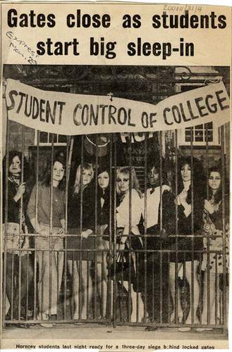 For some, a collaborative effort has been about challenging the status quo. As part of Tate archive’s 40th anniversary celebrations, artist and former teacher David Page recounts the student solidarity during the Hornsey College of Art uprising in 1968 – a six-week sit-in that led to intense debate, extended confrontation with the local authorities, questions in Parliament and, rather successfully, a government report.