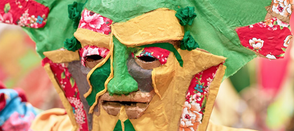 A swirling crowd of 140 figures currently fills the Duveen Galleries at the heart of Tate Britain. People, animals, skeletons and gods wave banners, beat drums and dance – all dressed in dazzling gowns, sharp suits, funeral robes and flowing cloaks adorned with stars, medals and jewels, photographs and colonial banknotes. In Hew Locke’s The Procession, Britain’s past ‘walks into the future’ in an installation that addresses themes of globalisation, migration and belonging.