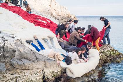 Cecilia Vicuña’s Beach Ritual (near Athens), performed at Documenta 14, Athens, Greece, 2017