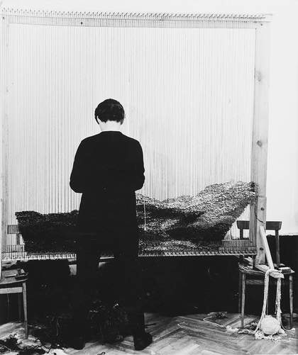 Magdalena Abakanowicz at her loom, 1966