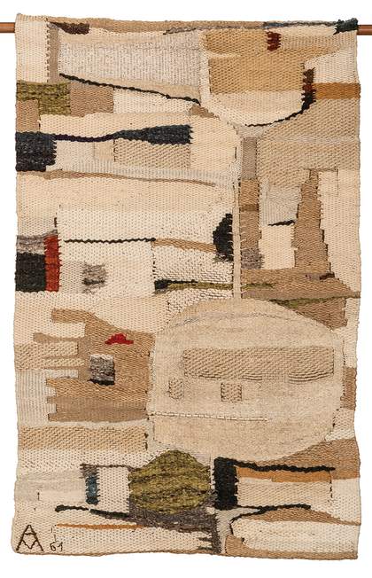 Abakanowicz studied painting between 1950 and 1954 at the Warsaw Academy of Fine Arts. This important artistic institution was exposed to severe scrutiny by the Ministry of Culture and Art, especially during the period in which the authorities were promoting socialist realism. A loosening of the political grip after 1956, known as the ‘thaw’, led to the liberalisation of public life in the Polish People’s Republic, and this extended to culture, which was seen as an important part of the socialist project. Despite relatively modest economic conditions, the 1960s proved to be a fruitful period for artists. The strong presence of pedagogues who had been educated under the system preceding Communist rule, along with a lack of material resources, gave rise to improvisational tactics and a reliance on inventive approaches to making and thinking that challenged the many constraints imposed on everyday life.