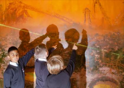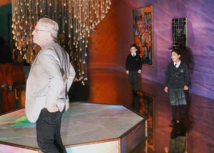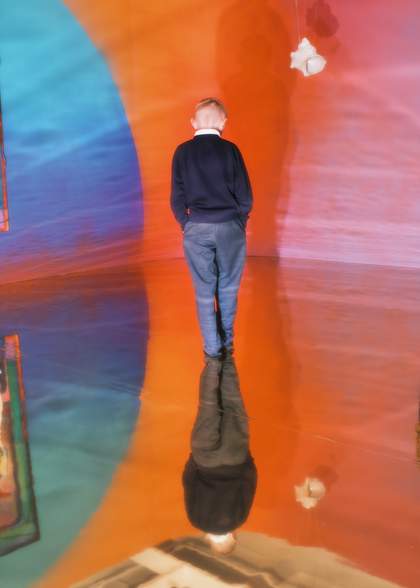 Xa’s display at Cartwright Hall is expansive and curious, attempting to provide new ways of engaging with the future by evoking the past. Her devotion to her Korean ancestors and her affinities with myth-making create an opportune space for this kind of experimental storytelling. It wouldn’t be a surprise if her goal of fusing sound, textile, and painting was to elicit a transcendental experience. Certainly, children from a local primary school visiting the galleries at the same time seemed to enjoy the vertigo induced by walking across Xa’s mirrored floor. This is a coalition of symbolism, speculative fiction, futurism and history, and Xa’s concerns are beyond beauty: they are dialogue, memory, nature and imagination.
