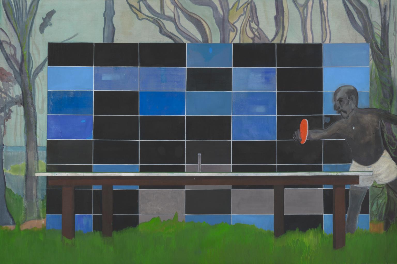 The Cage paintings are the outcome of several layers of painting and erasure. Their surfaces are animated by lines where the squeegee has paused, by brushstrokes, other scrapings, and areas where the skin of oil paint has dried and rippled. The paint seems delicate and fluid in some areas, coarser and more solid in others.
