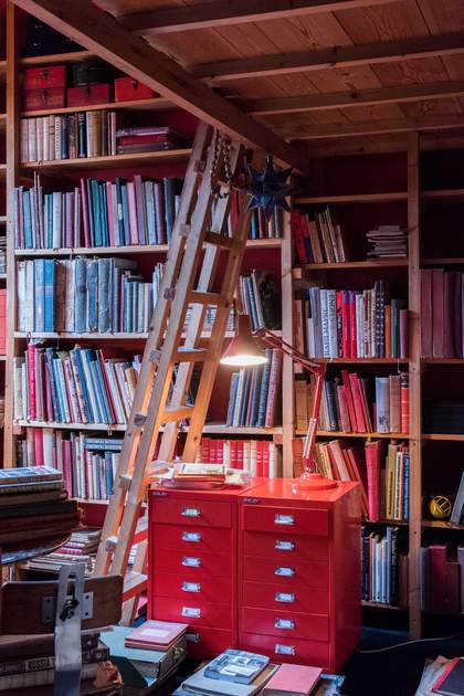Library. All wooden floors, shelves and panelling where built and installed by King when he renovated the property in the 1960s