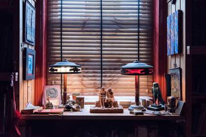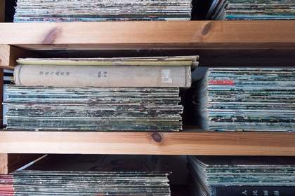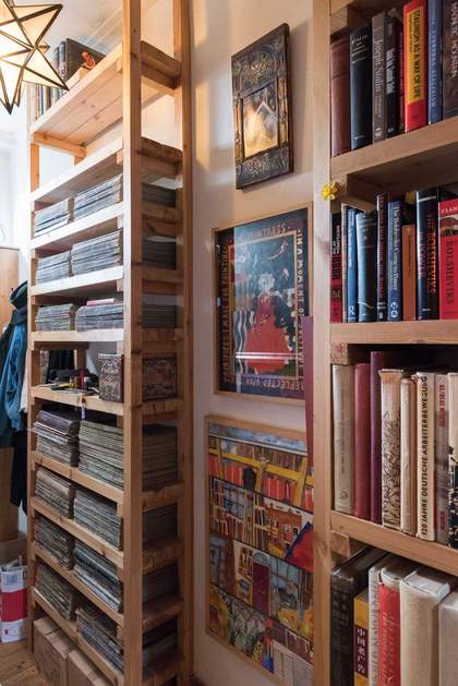 The attic studio. Featuring King's record collection, which includes vinyls by Maria Yudina