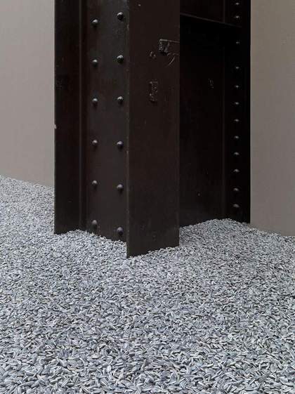 The landscape of sunflower seeds can be looked upon from the Turbine Hall bridge, or viewed at close range in the east end of the Turbine Hall on Level 1. It is no longer possible to walk on the surface of the work, but visitors can walk close to the edges of the sunflower seed landscape on the west and north sides.